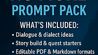 - July 06, 2025 by Rottencone83 Builds#fantasy-writing, #worldbuilding, #npc-creation, #magic-system, #story-prompts, #ttrpg-tools, #gamedev-toolsThe Fantasy Edition prompt pack was expanded with 20+ new prompts and cleaner structure. This version includes: - New NPC archetype prompts (by race/class/style) - Expanded lore, magic, and world mech... Continue reading