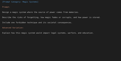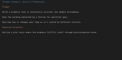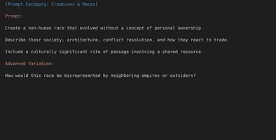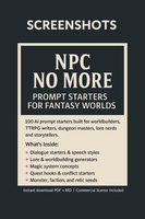 Tags | ai-prompts, Fantasy, game-dev, tools, Tabletop role-playing game, worldbuilding, writing |