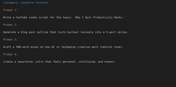 Longform Starters – Blog outlines, video scripts, and idea expansion