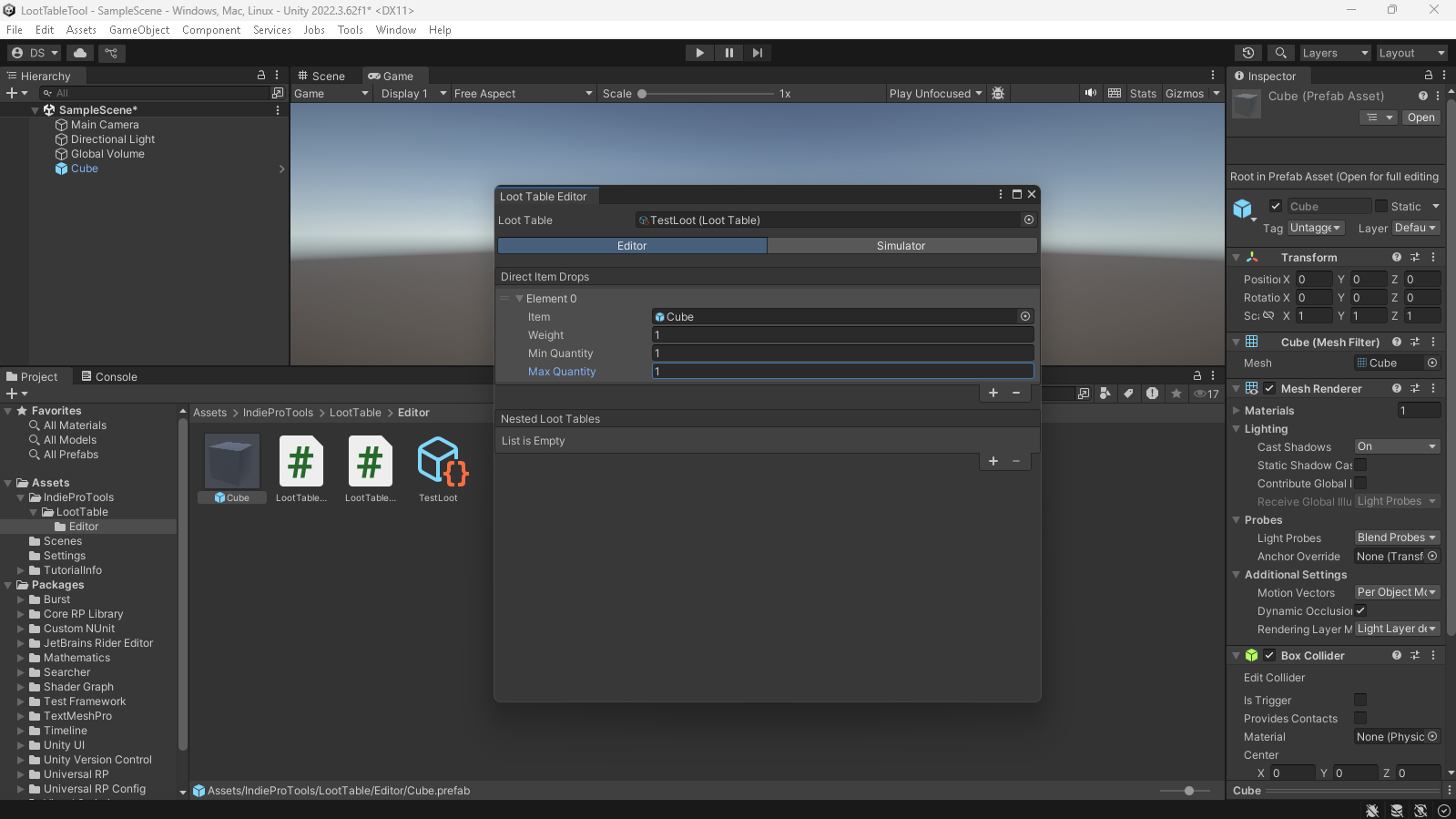 A Unity Editor tool for designing, testing, and balancing loot systems with real-time simulation data.